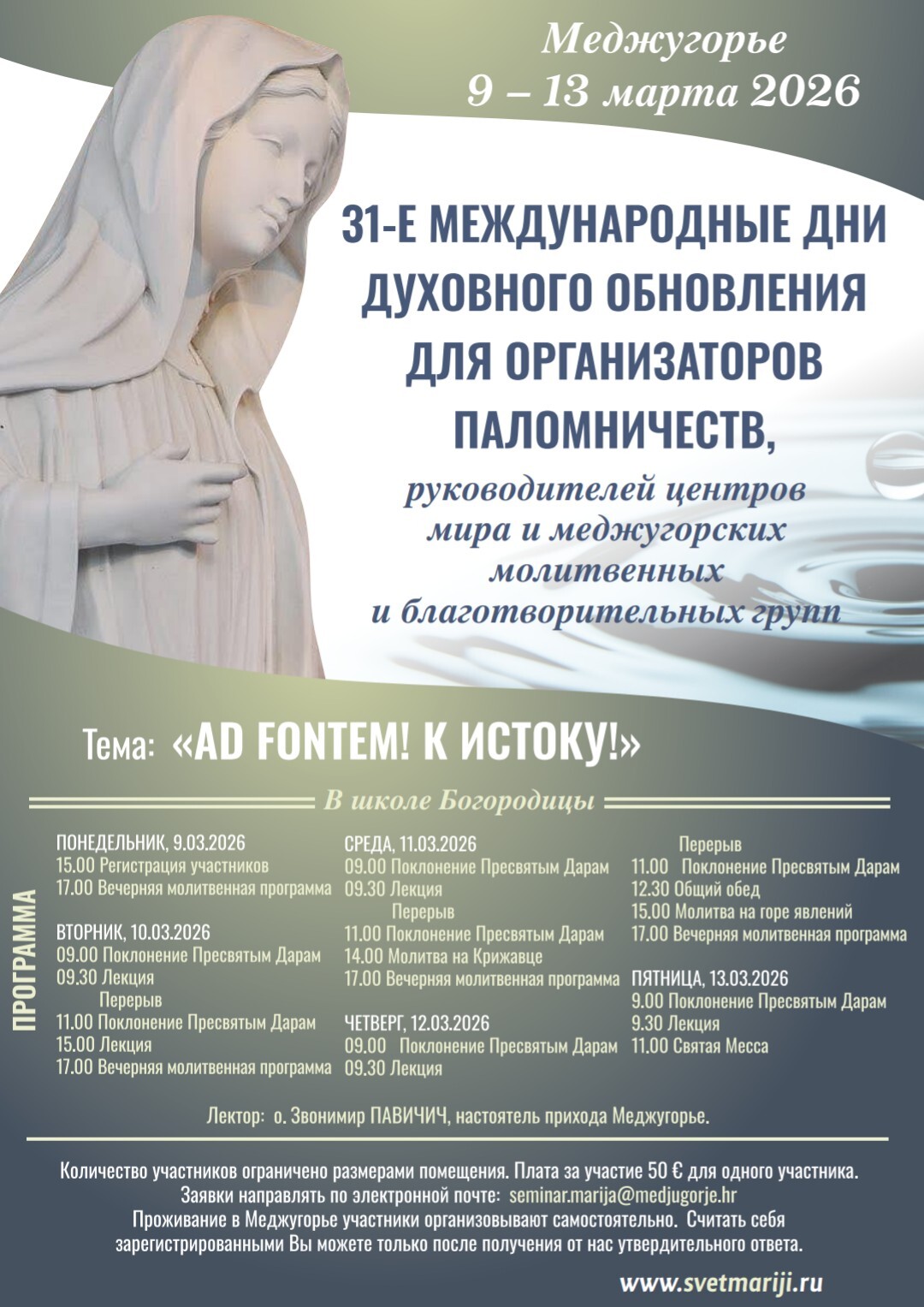 31 МЕЖДУНАРОДНЫЕ ДНИ ДУХОВНОГО ДЛЯ ОРГАНИЗАТОРОВ ПАЛОМНИЧЕСТВ, РУКОВОДИТЕЛЕЙ ЦЕНТРОВ МИРА И МЕДЖУГОРСКИХ МОЛИТВЕННЫХ И БЛАГОТВОРИТЕЛЬНЫХ ГРУПП